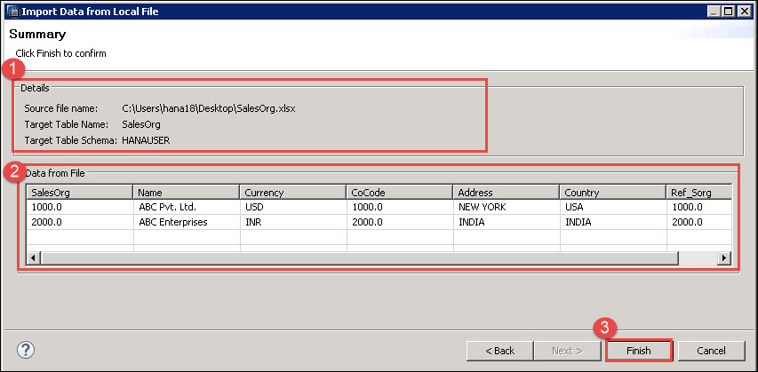 将数据从平面文件上传到 SAP HANA 的步骤如下 –