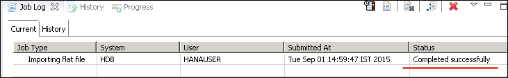 - 导入选项成功完成后,我们应该在作业日志视图中看到状态为“成功完成”的条目。