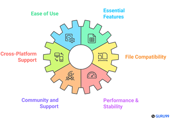 在Guru99,我们致力于提供准确、客观和值得信赖的内容,以满足用户需求。我们花费了 110 多个小时比较了 45 多个免费办公套件工具,以确保提供一份经过充分研究且有用的指南。我们专注于平衡功能性、可用性和可靠性。此列表包括功能、优缺点和经过验证的好处的透明细分——非常适合寻求安全、高性能工具的用户。我曾经使用过一个不太出名的选项,它的速度和可靠性出人意料地超过了许多商业套件。评估基于可用性、兼容性和实际性能。在审查工具时,我们根据以下因素进行: