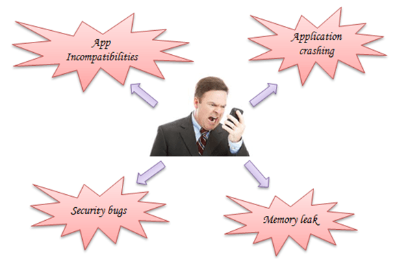 无论您投入多少时间进行设计和实现,错误都是不可避免的,并且会出现缺陷。iOS 应用程序上有一些常见的缺陷。如下图所示。