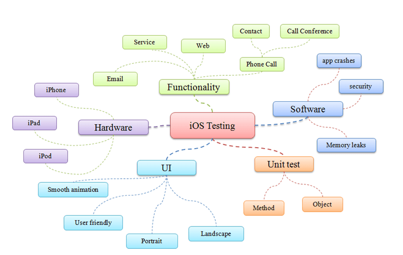 如上图所示,iOS 测试 思维导图显示了测试人员在对 iOS 进行测试时应考虑的所有事项。