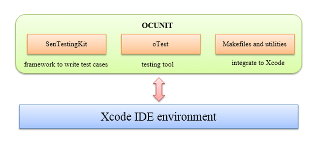 OCUnit 是 Mac OS 中用于 C-Objective 的测试框架。OCUnit 框架的最大优势是与 XCode 开发环境的紧密集成,如下图所示。