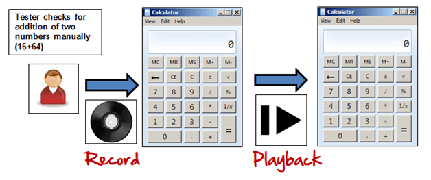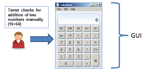 GUI 测试可以使用自动化工具完成。这分为两个部分。在录制期间,自动化工具会捕获测试步骤。在回放期间,录制的测试步骤会在被测应用程序上执行。此类工具的示例是 QTP。