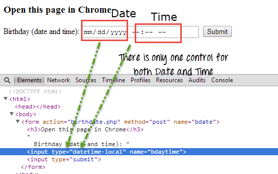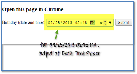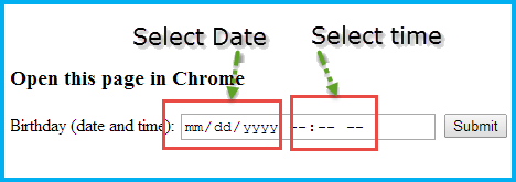 对于日期时间选择,HTML5 有一个新的控件,如下所示。
