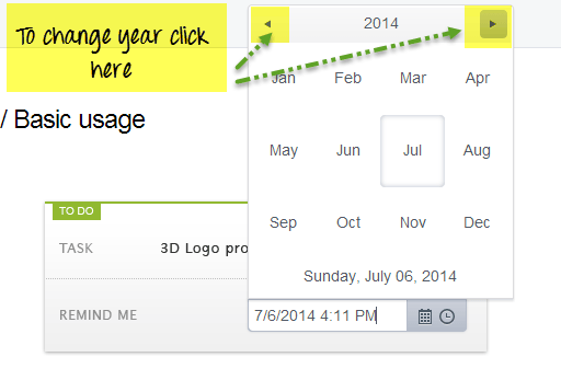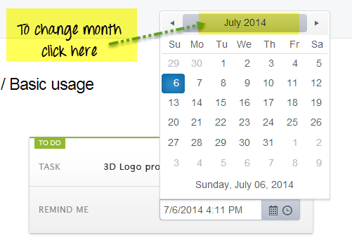 在这里,如果我们需要更改月份,我们必须点击日历头部的中间。