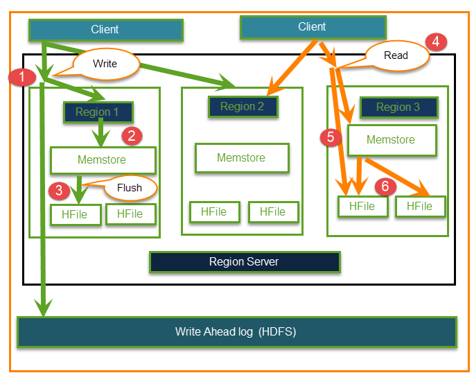 - 当 HBase Region Server 接收到来自客户端的写入和读取请求时,它会将请求分配给一个特定的 region,该 region 实际存储了列族