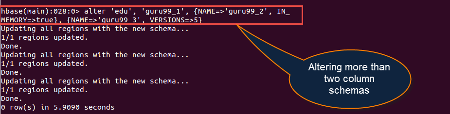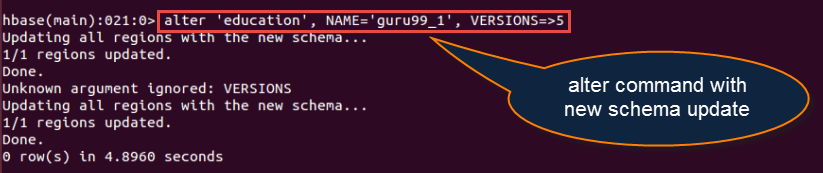 create 'guru99', {NAME=>'Edu', VERSIONS=>213423443}