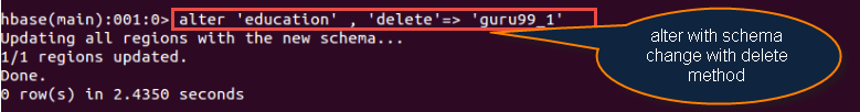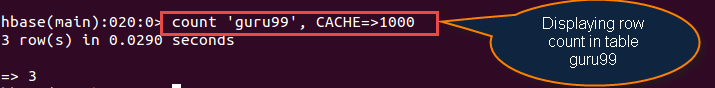 hbase(main):001:0> create 'education' ,'guru99' 0 rows(s) in 0.312 seconds =>Hbase::Table – education