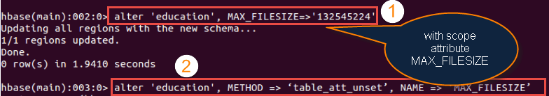 上面的示例解释了如何在HBase中创建一个具有指定名称的表,该名称根据字典或列族的规范给出。除此之外,我们还可以传递一些表范围的属性。
