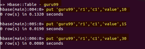 hbase> g.put 'guru99', 'r1', 'c1', 'value', 10