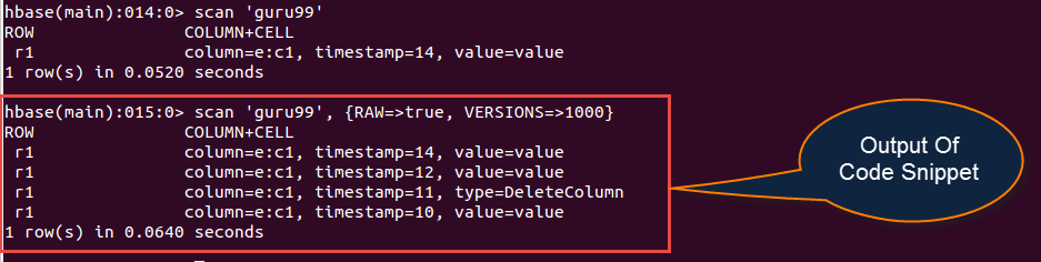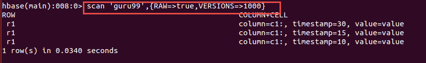 Query: scan 'guru99', {RAW=>true, VERSIONS=>1000}