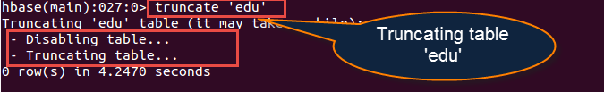 截断hbase表后,模式仍然存在,但记录不存在。此命令执行3项功能,如下所述: