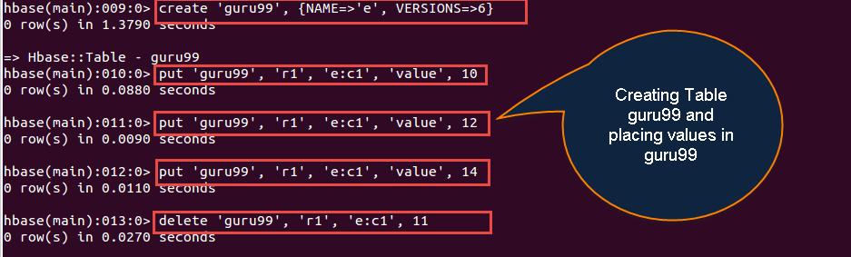 create 'guru99', {NAME=>'e', VERSIONS=>2147483647}