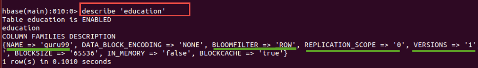 hbase(main):010:0>describe 'education'