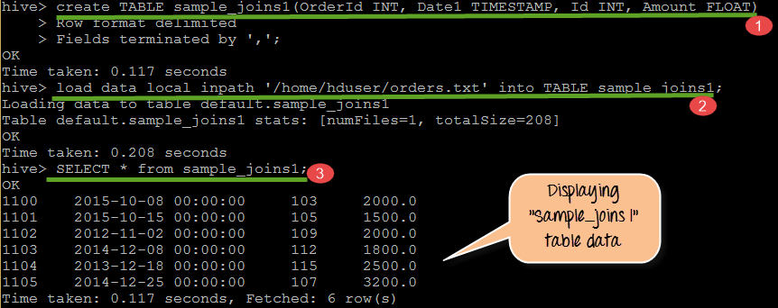 步骤 3) 创建 sample_joins1 表并加载、显示数据