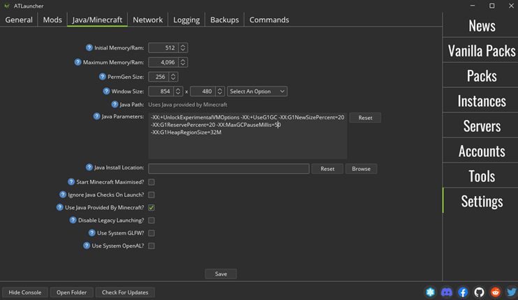ATLauncher 是一个第三方启动器,提供广泛的自定义选项,包括为我的世界分配更多内存。它还提供大量的模组和模组包,使其成为喜欢修改我的世界体验的玩家的热门选择。