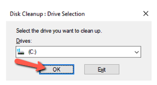 步骤 3) 在“磁盘清理”窗口中,选择您要清理的驱动器,然后点击“确定”按钮。