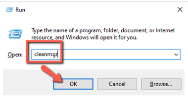 步骤 2) 输入“cleanmgr”(不含引号)并按 Enter。