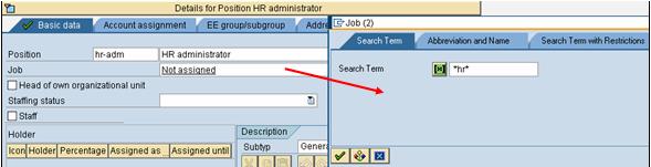 第 3 步) 在“详细信息”部分,在“基本数据”选项卡下,选择“职位搜索”。输入职位名称,然后单击检查标记
