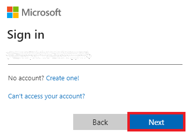 步骤 1)在浏览器中访问 login.microsoftonline.com 并登录您的 Microsoft 帐户。输入您的 Microsoft 电子邮件地址,然后点击“下一步”。