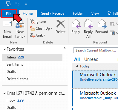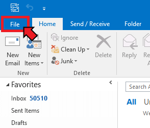 步骤 2)点击 Outlook 应用程序菜单栏左上角的“文件”选项卡。