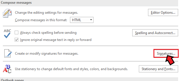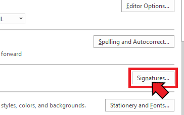 步骤 4)在“撰写邮件”部分下,点击“签名”按钮。