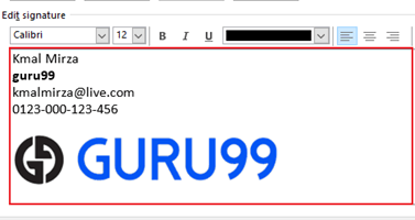 您的已编辑签名现在应该已保存,可用于您的 Outlook 电子邮件。