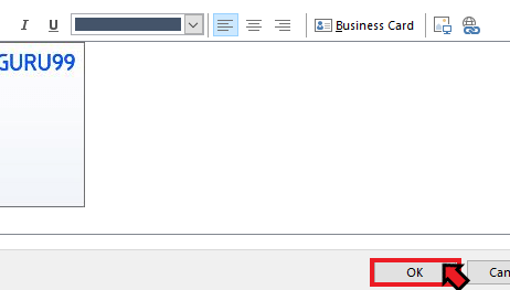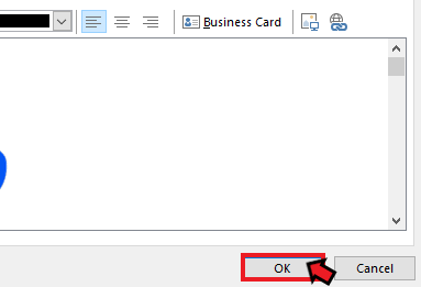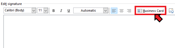 步骤 6)在“编辑签名”框中,点击工具栏上的“名片”按钮。