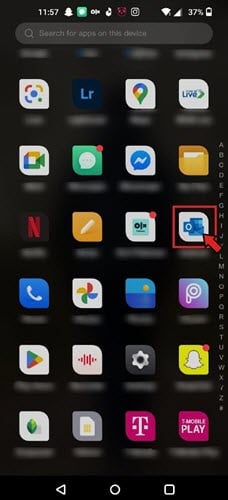 步骤 1)在您的移动设备上打开 Outlook 应用程序。