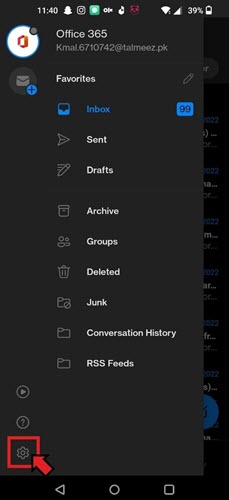步骤 3)滚动到菜单底部,然后点击设置或齿轮图标。这将带您进入 Outlook 设置屏幕。