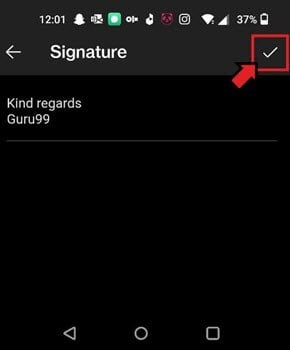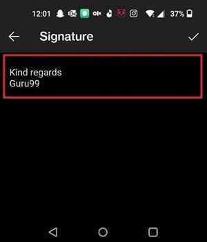 步骤 5)在签名屏幕的文本框中输入新的电子邮件签名或编辑现有签名。