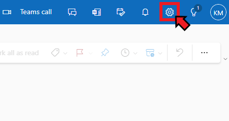 步骤 4)点击页面右上角的齿轮图标以打开 Outlook 设置菜单。