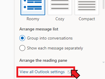 步骤 5)在“设置”窗口中,选择列表底部的“查看所有 Outlook 设置”。