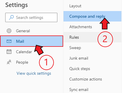 步骤 4)在设置的“邮件”部分下,点击“签名”选项以打开签名编辑器。