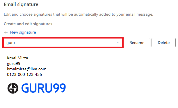 步骤 7)通过点击“新建签名”下的下拉菜单选择要更改的签名。