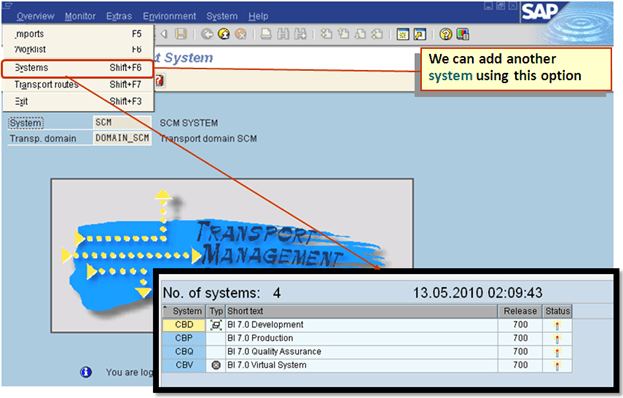 - 要完全接受,请登录到域控制器系统(客户端 000)-> STMS -> 概览 -> 系统。新系统将在此处可见。从菜单中选择 “SAP 系统” -> 批准。
