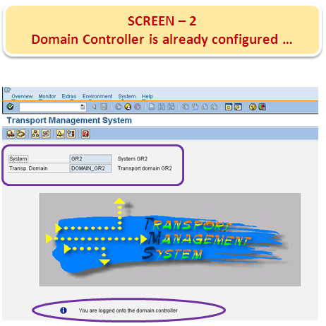 - 登录到被指定为域控制器的 SAP 系统的客户端 000,并输入事务代码 STMS。