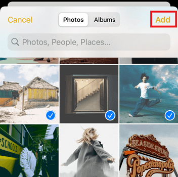 步骤4)选择您希望保存为PDF的照片。然后点击“添加”按钮。