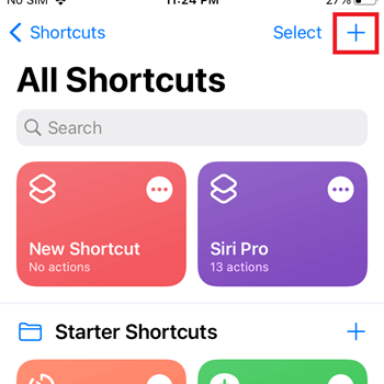 步骤2)点击“+”图标以创建新的快捷指令。