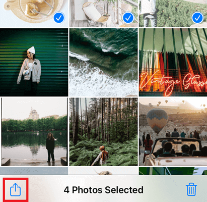 步骤1)选择照片并点击共享图标。