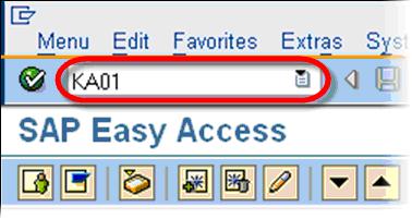 要创建新的成本要素,请在SAP事务代码框中输入事务代码 KA01