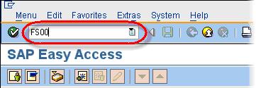 步骤 1) 在 SAP 命令字段中输入事务码 FS00。