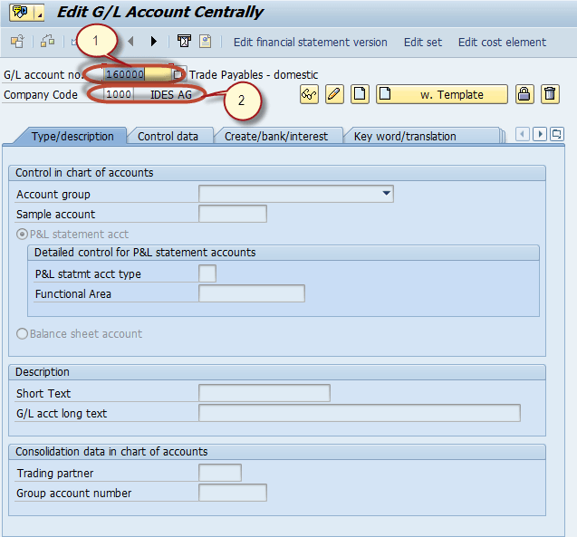 请注意,SAP 提供了一个选项,可以通过参考另一个总账账户来创建总账账户。在本教程稍后将对此进行详细介绍。
