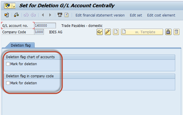 步骤 6) 在下一个屏幕上,您有总账账户的删除选项。