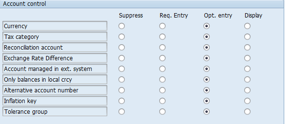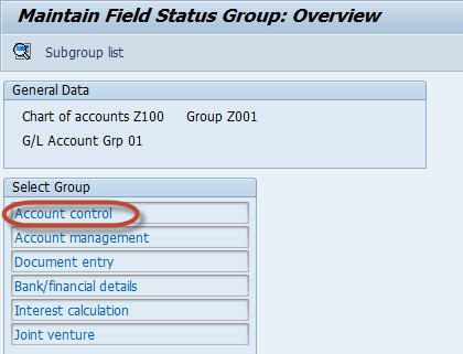第 7 步:在下一个屏幕上,您可以更改总账 COA 主数据不同部分的字段状态。例如,选择“科目控制”。