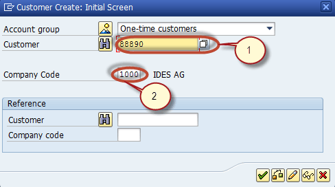 步骤1) 要创建一次性客户主数据,在SAP命令字段中输入事务代码FD01