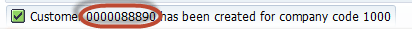 步骤9) 检查状态栏以确认新客户主数据已创建