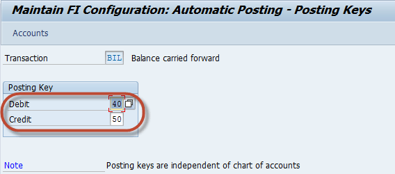 您可以通过在应用程序菜单中选择过账码来维护此账户的过账码。