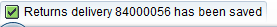 步骤 4) 点击保存按钮。显示消息“退货 60000295 已保存”。