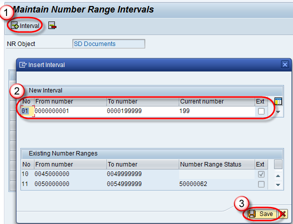 VN01 是用于创建内部编号范围的事务代码。我们将在第 3 步中使用此内部编号。